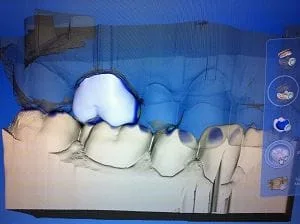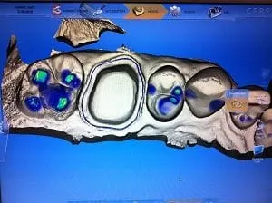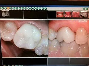 CEREC uses CAD/CAM (Computer Aided Design/Computer Aided Manufacturing) technology, incorporating a camera, computer and milling machine in one instrument. The dentist uses a special camera to take an accurate picture of the damaged tooth. This optical impression is transferred and displayed on a color computer screen, where the dentist uses CAD technology to design the restoration. Then CAM takes over and automatically creates the restoration while the patient waits. Finally, the dentist bonds the new restoration to the surface of the old tooth. The whole process takes about one hour.